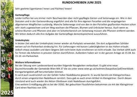 Wir bitten dadurch alle ihre Aufgabe der Gartenpflege dementsprechend auszuführen.
