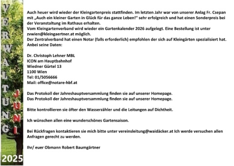 Bei Rückfragen kontaktieren sie mich bitte unter vereinsleitung@waidäcker.at Ich werde versuchen allen